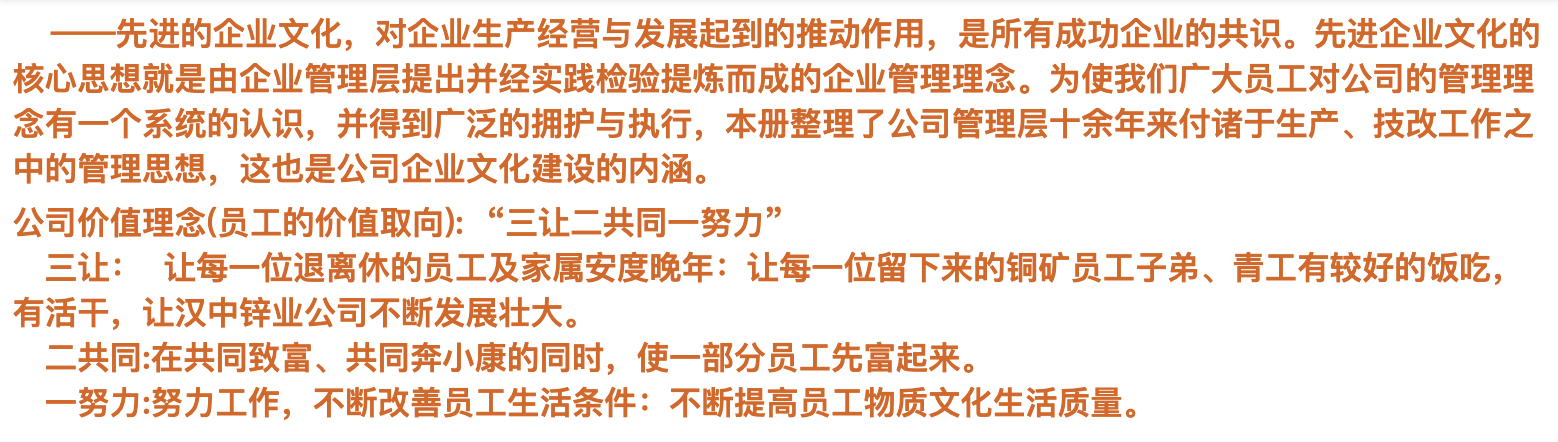 漢中鋅業公司管理理念