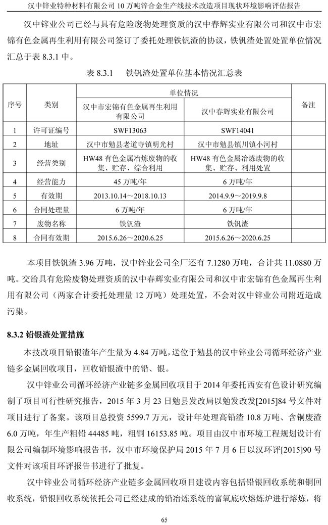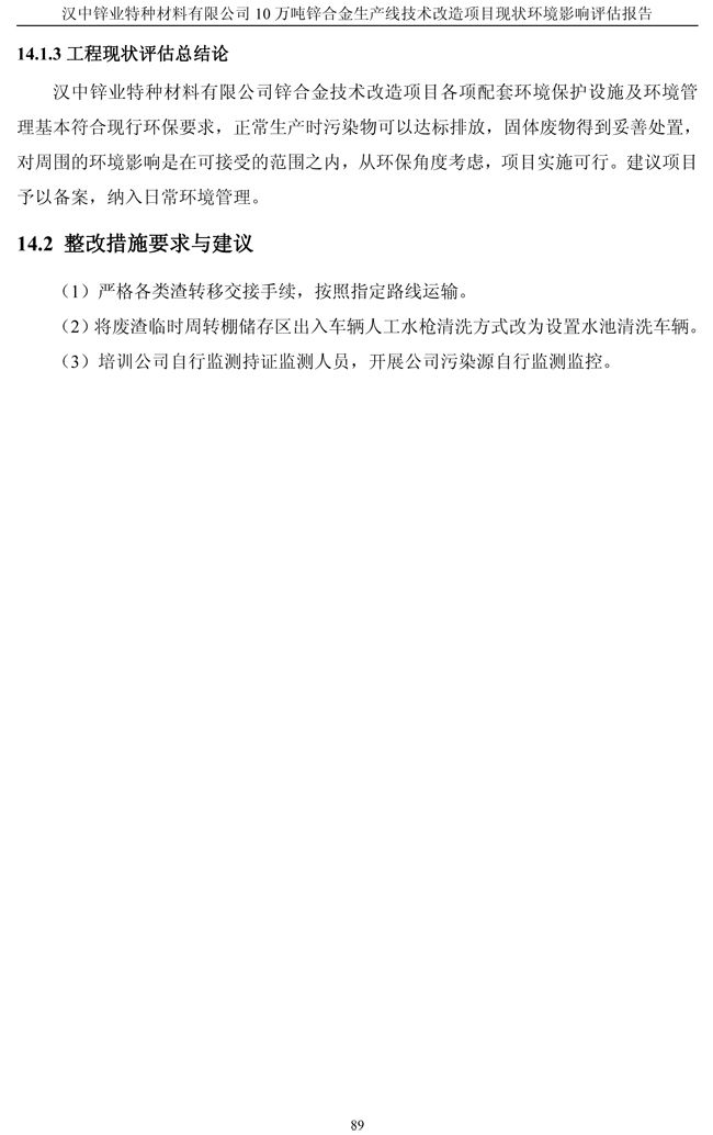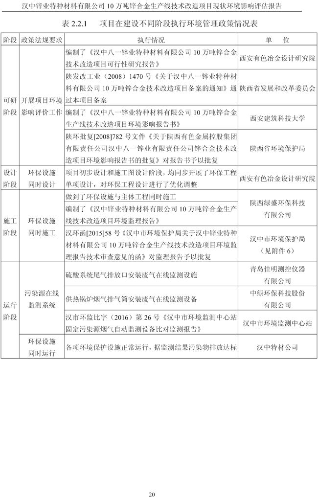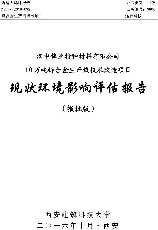 項目實施單位:漢中鋅業有限責任公司 評估報告編制單位:西安建筑科技大學