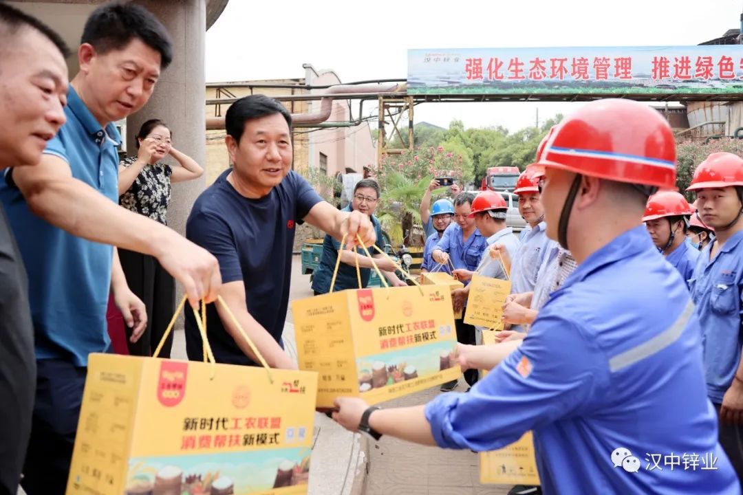 紅色七月,驕陽似火。7月14日,陜西有色金屬集團工會主席張繼祥、副主席艾軍、干事邵坤鵬一行來到漢中鋅業,深入生產一線開展“送清涼”活動,為高溫酷暑中辛勤工作的一線職工發放防暑降溫物品,送來了集團公司的關愛和夏日的清涼。公司黨委副書記、總經理王正民、工會主席劉洪軍陪同。