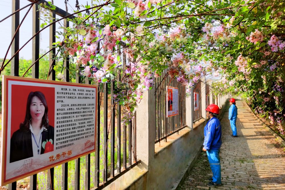 人間四月芳菲盡,五月風迎面吹。走進了五月,漢中鋅業“網紅路”上薔薇成蔭,青枝綠葉,繁花盛開,一路芬芳美麗風景讓人陶醉。公司勞模、先進事跡宣傳展板一字排開、光彩照人,弘揚勞模精神,講好漢鋅好故事,傳遞漢鋅正能量。