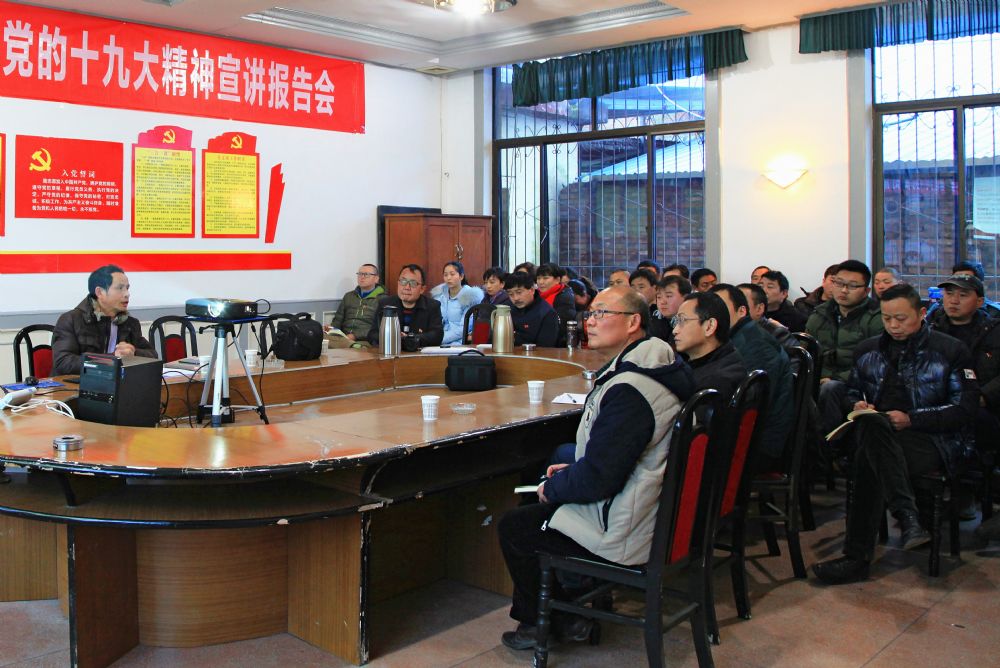 近日,公司黨委在組織黨員干部集中聽取集團公司宣講團成員十九大精神宣講的基礎上,組建了由公司黨委委員楊新宏牽頭負責、9名理論宣傳骨干為成員的公司宣講團,從2017年12月中旬至12月底,分片區開展了宣講活動。