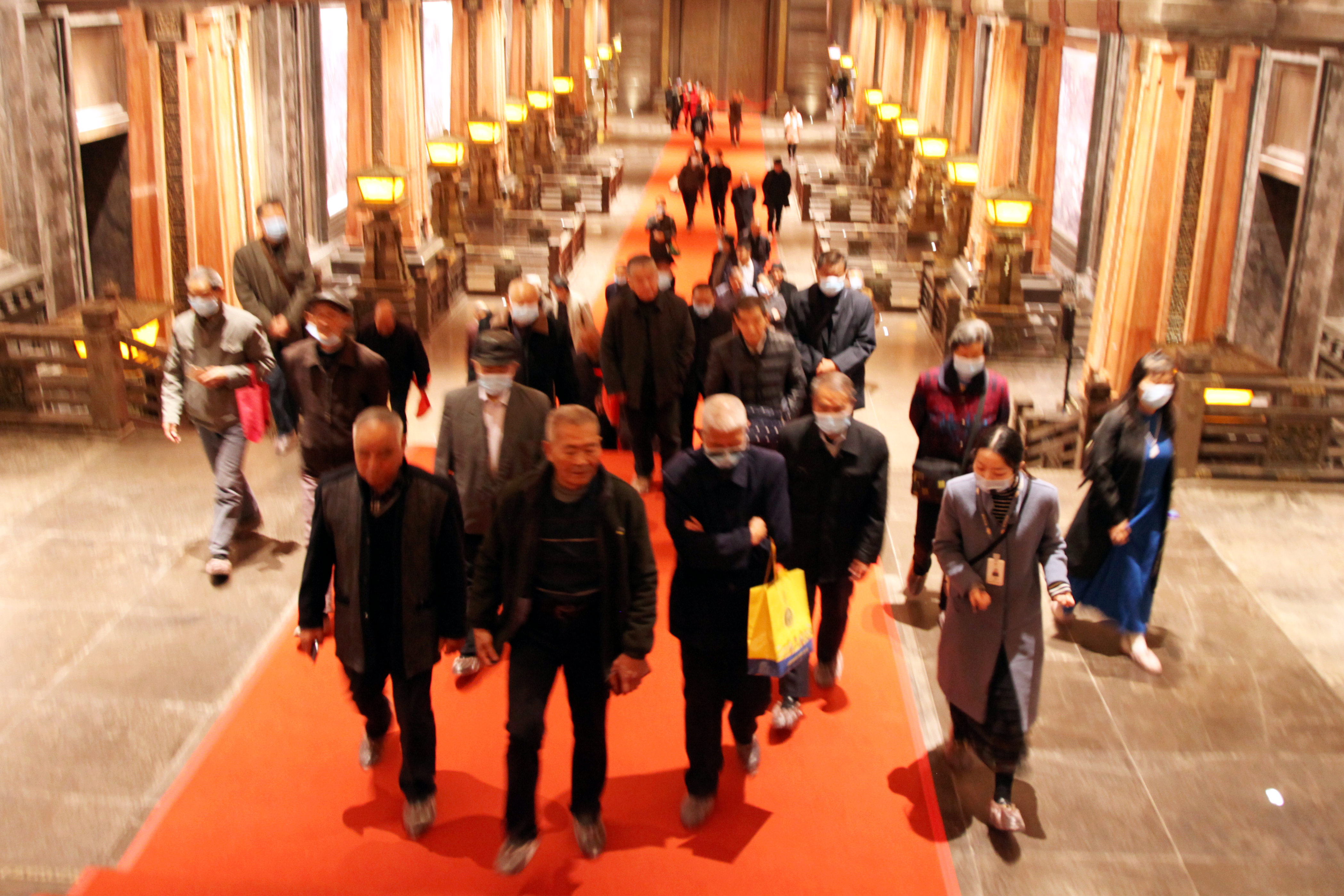 在導游的引領下走進漢文化博物館內,首先映入眼簾的是氣勢恢宏的水下長廊,鋪著紅毯的臺階層層疊起、栩栩如生的壁畫在走廊兩側一一排開、精雕細琢的屋頂裝飾金碧輝煌,霎時間將大家帶入那久的大漢夢境之中!